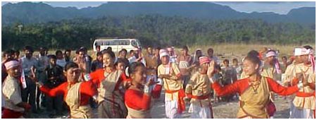 Wangala Festival : This is the biggest of all the festivals of the Garos performed in connection with the Jhum Cultivation. This is usually held in October, but each village sets its own time and so there are two or three weeks during which Wangala is celebrated in one or two villages. The festival of a single village lasts about a week. This festival is observed to honour and offer sacrifices to their greatest God called Saljong (Sun-God).